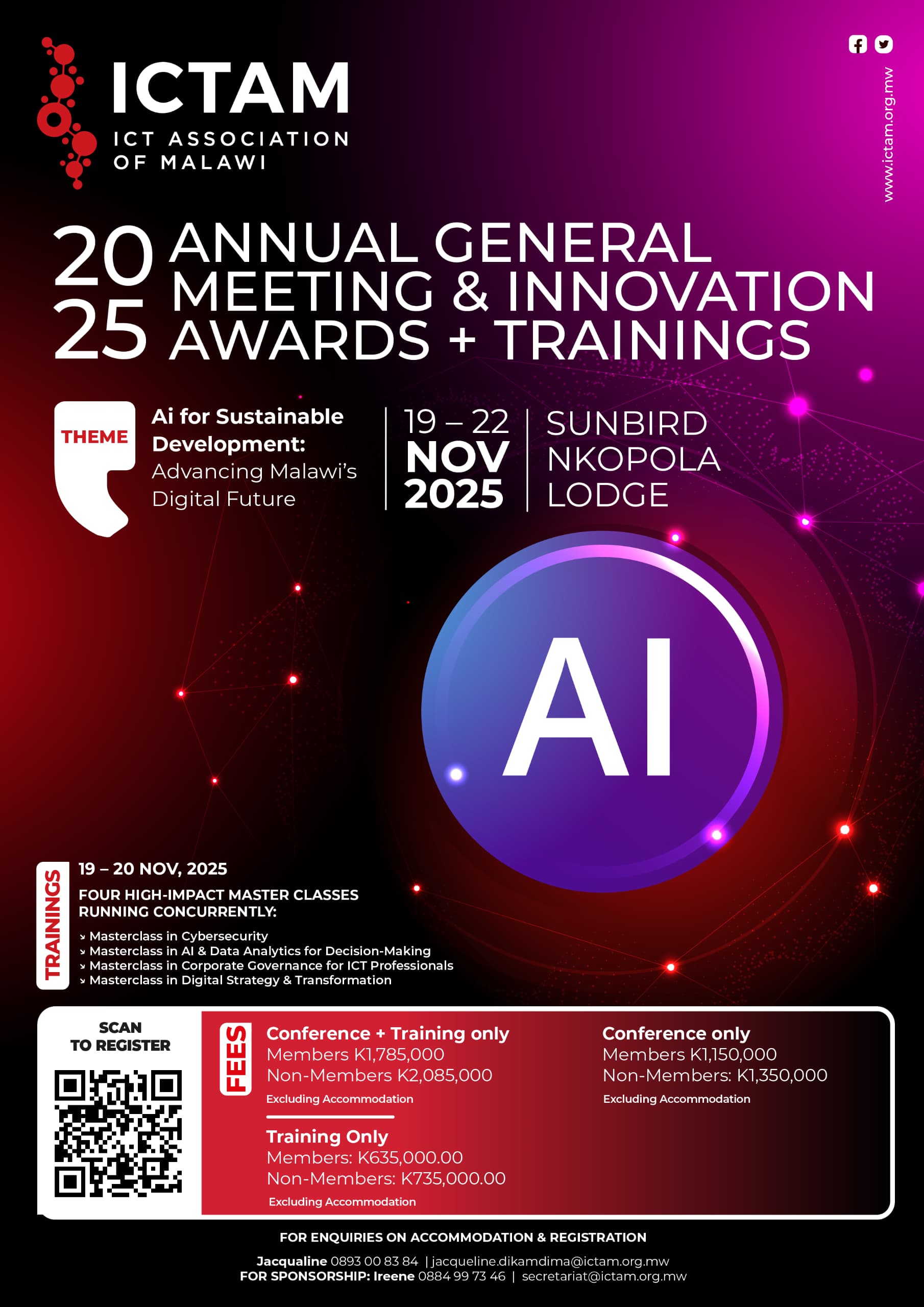 2024 ICTAM Annual General Meeting (AGM) and Innovations Awards, scheduled for 22nd to 23rd November 2024 at Sunbird Nkopola, Mangochi.